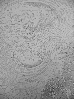 Those who attain the highest form of immortality are said to sprout feathers and wings and become coeval with the sky and earth as they ride the clouds and winds and dragons of paradise. This drawing accompanied one my esoteric stories about a soul being on her last journey back to source.